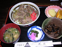 ドライブインで飛騨牛丼定食を食べました。お肉想像してたよりも硬かった。