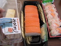 あとはやっぱります寿司とカニ寿司を買って、外のベンチで食べました.贅沢だよね〜(^m^*