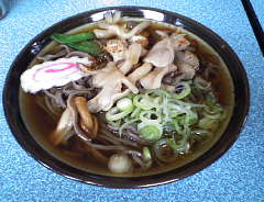 きのこそばと焼き鳥丼です。蕎麦は手打ち風でした、これならもりそばを食べてみたいかな?と思ったけど