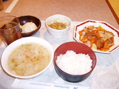 | S寝台(メットも置けてイイね♪) | 夕飯は、豚汁と酢豚と納豆と ポテトサラダとフリードリンク |