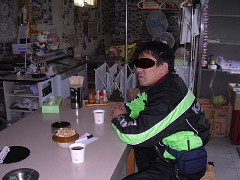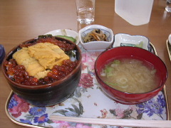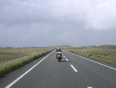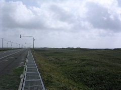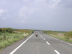 日本海オロロンラインを走り、道の駅「てしま」に到着で遅めの朝食?早めの昼食? おっくんは睡魔に襲われ、ラーメン食べたあと仮眠を取りました。私は珍しく全然元気です!!p(^へ^q なんか不思議な眺めだったよ。海・原野・道・原野でした。海岸がないんだよなぁ〜。えっ、見えないだけ??